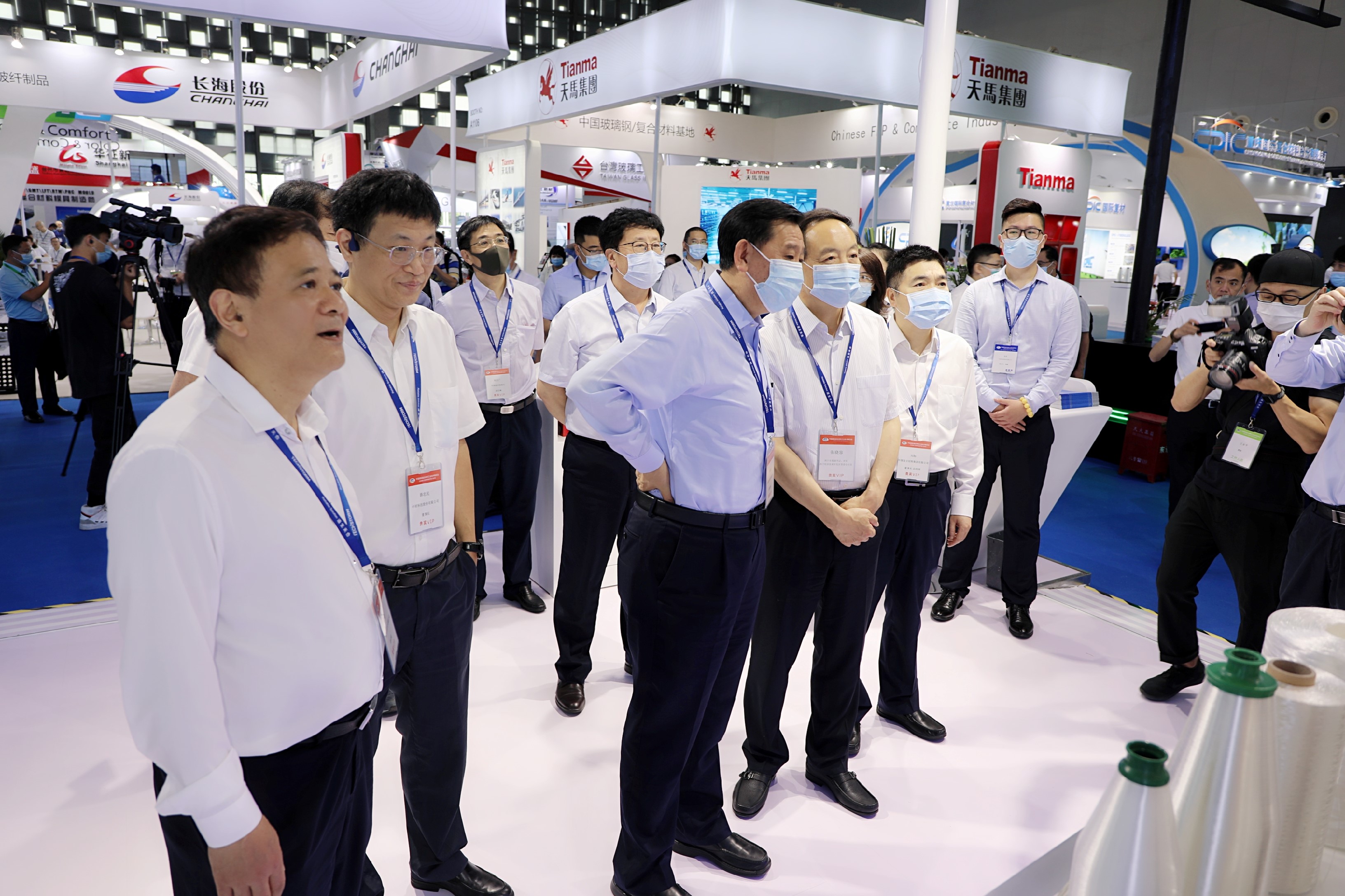 展會(huì)開(kāi)幕后,中國(guó)建材集團(tuán)副董事長(zhǎng)李新華,西寧市委副書(shū)記、市長(zhǎng)、西寧經(jīng)濟(jì)技術(shù)開(kāi)發(fā)區(qū)管委會(huì)主任張曉容到我公司參觀展臺(tái)、聽(tīng)取匯報(bào)并慰問(wèn)現(xiàn)場(chǎng)工作人員,中國(guó)復(fù)合材料集團(tuán)有限公司黨委書(shū)記、董事長(zhǎng)兼總經(jīng)理劉標(biāo),公司薛忠民、宋伯廬、趙謙、趙俊山等領(lǐng)導(dǎo)陪同參觀。