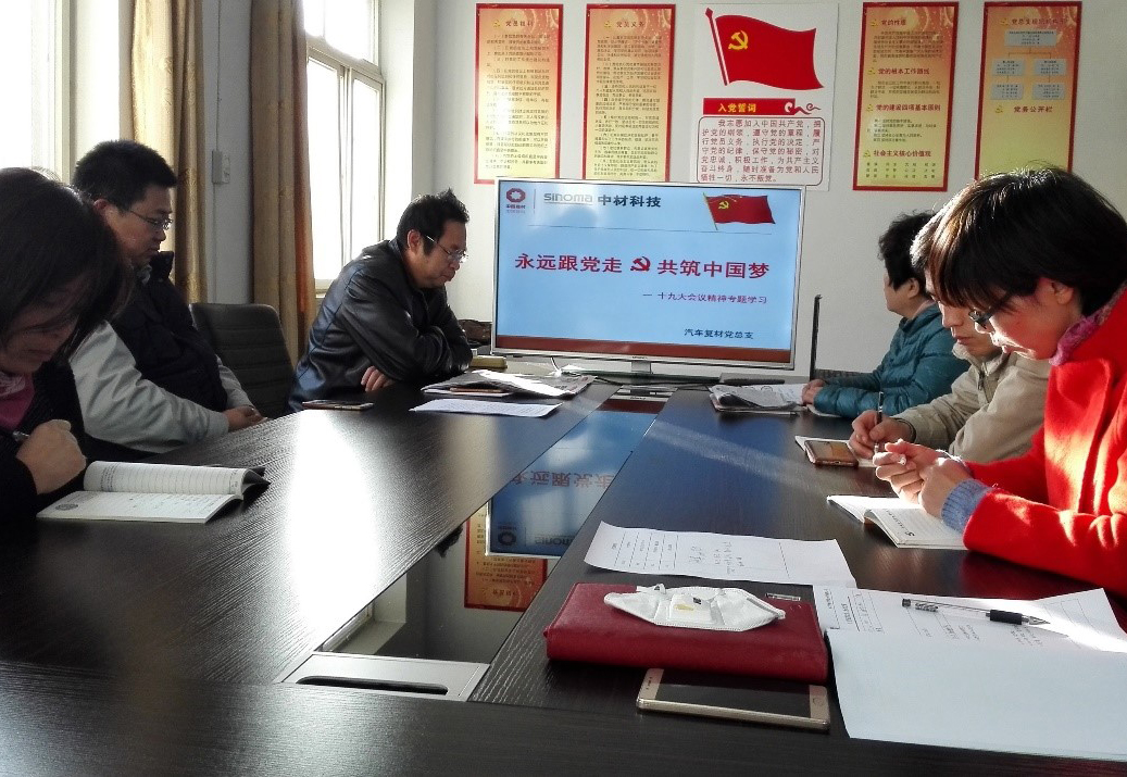 11月2日下午,北京中材汽車復(fù)合材料有限公司黨總支專題學(xué)習(xí)了黨的十九大報告精神。汽車復(fù)材總支書記王順喜同志主持學(xué)習(xí)會。 黨的十九大是在全面建成小康社會關(guān)鍵階段、中國特色...